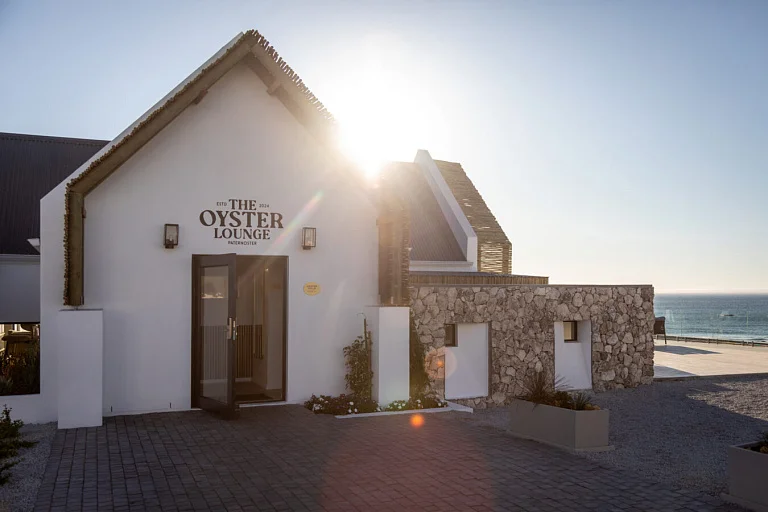 The Oyster Lounge in Paternoster captures the charm of the West Coast with an interior that is both coastal and refined. The space is airy and light, with whitewashed walls, soft natural textures, and wide windows that frame the sea beyond. Nautical accents and touches of weathered wood nod to the village’s fishing heritage, while plush seating and contemporary finishes elevate the atmosphere into something more luxurious. The result is a relaxed yet sophisticated lounge where the ocean sets the tone, perfect for savoring oysters and champagne in style.